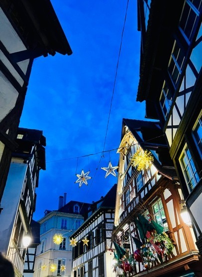 Zunächst hat sich das Koblenz-Kolleg das architektonisch beeindruckende Europaparlament angeschaut. Danach ging es zum Straßburger Weihnachtsmarkt (50 Minuten Gehweg vom Parlament, on y va !). Auf dem Weihnachtsmarkt gab es viel französisches Essen (Une baguette pour 11 euros, c’est cher !) und auch deutsche Köstlichkeiten (Currywurst und Haxe), viele Menschen, viele poussettes (Kinderwägen) in engen Gassen, de la jolie décoration de Noël. Anschließend besuchten wir die ganz alte Altstadt (Petite France) mit den vielen maisons à colombage (Fachwerkhäuser) – UNESCO-Weltkulturerbe. Das Weihnachtsshopping durfte auch nicht fehlen, was die ortsansässigen Franzosen sehr erfreut hat. Die partielle Unfreundlichkeit mancher gestressten Franzosen ließ sich mit Glühwein verzeihen.